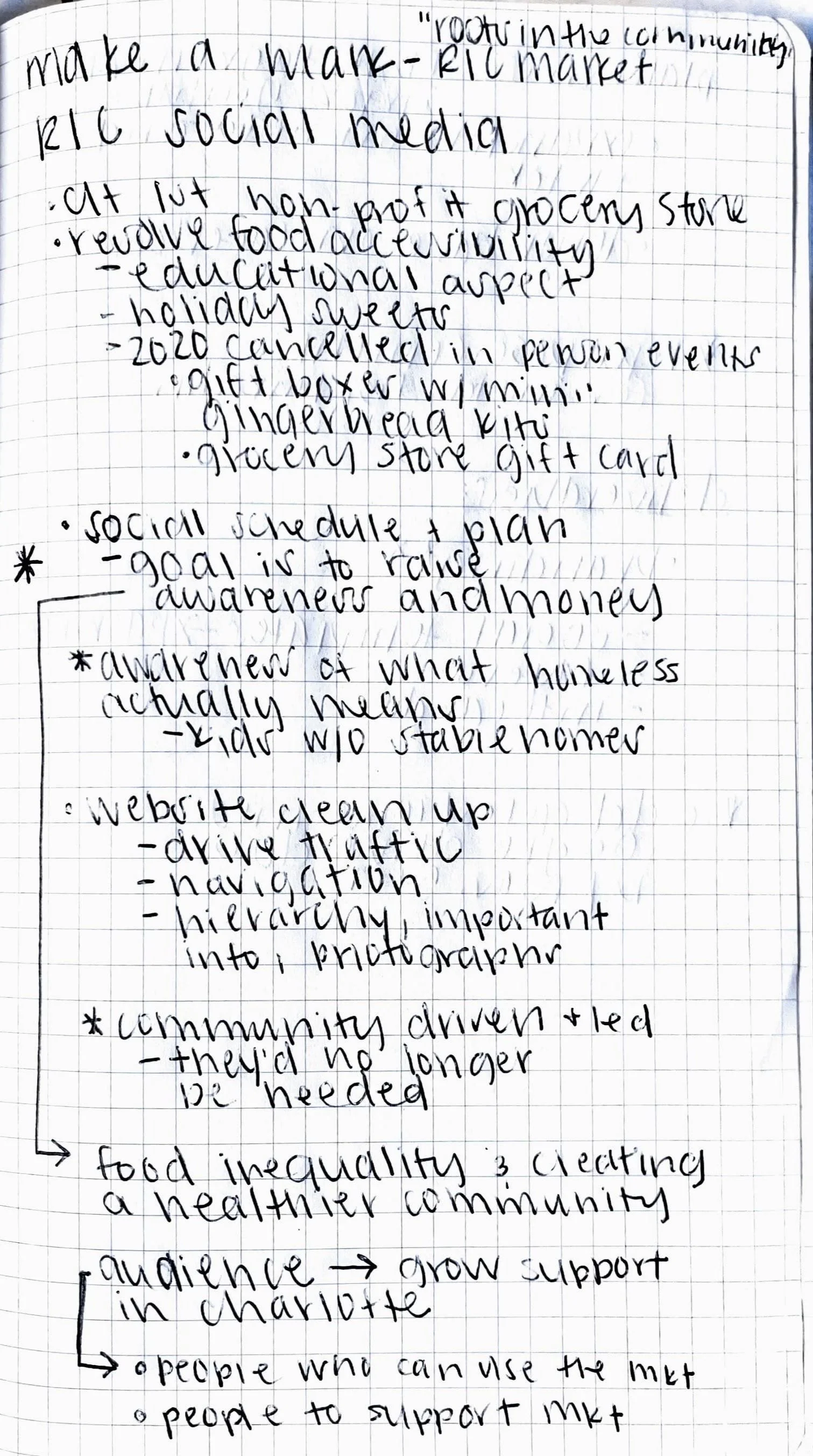 I was partnered with Roots In the Community Market aka RICās Market which is a not-for-profit full-service grocer that will offer affordable healthy food where there is little or no access to it. I had a team of two marketing experts who handled the copywriting and strategy while I was fully in charge of the designs.